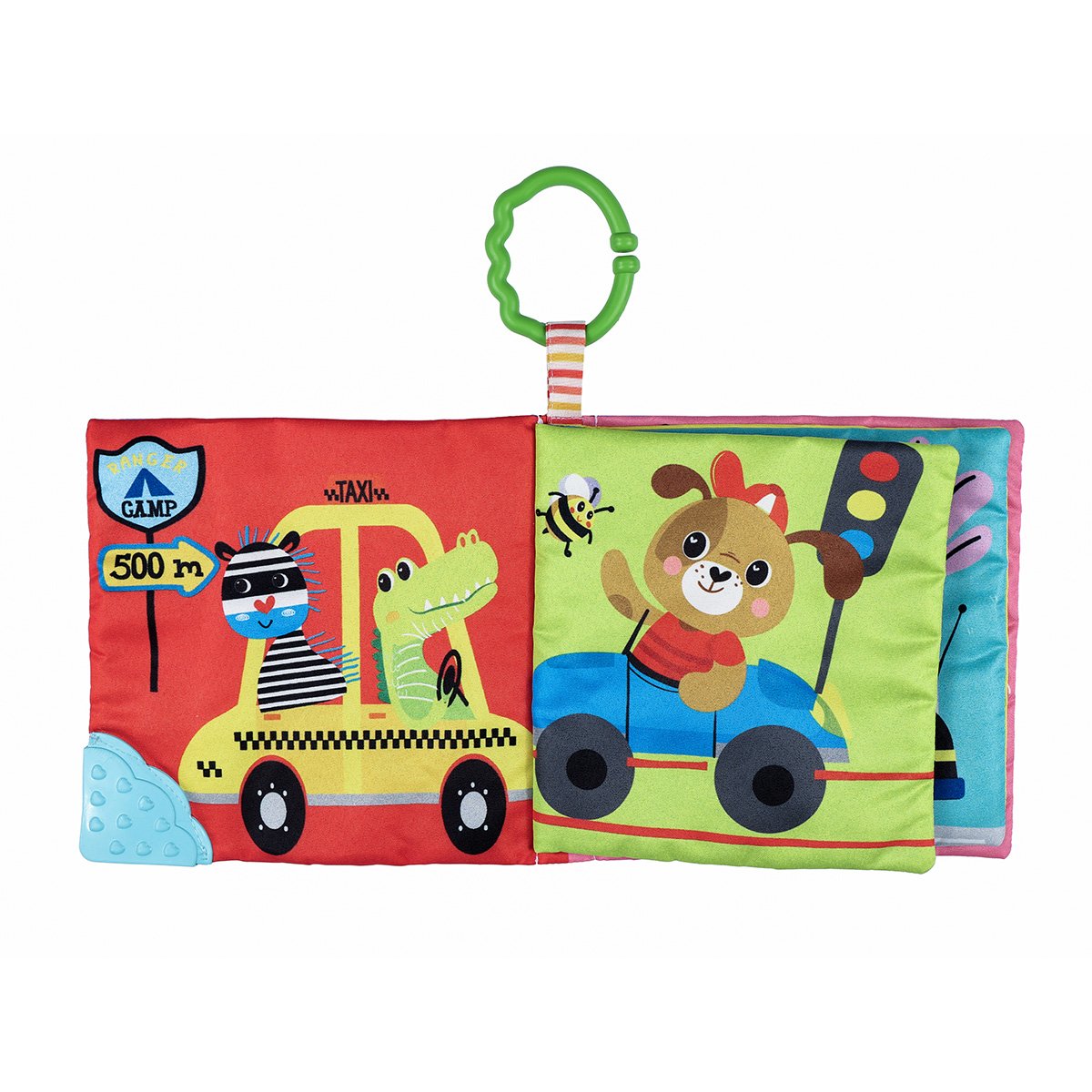The attachment ring on the soft book allows it to be easily and securely fastened to a baby seat, stroller, crib, or car.